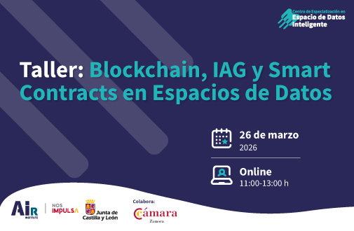 El próximo 26 de marzo, de 11:00 a 13:00 horas, se celebrará el Taller Práctico: Blockchain, IAG y Smart Contracts en Espacios de Datos (I Edición) , organizado por el Centro de Especialización en Espacio de Datos Inteligente , proyecto coordinado por AIR Institute.